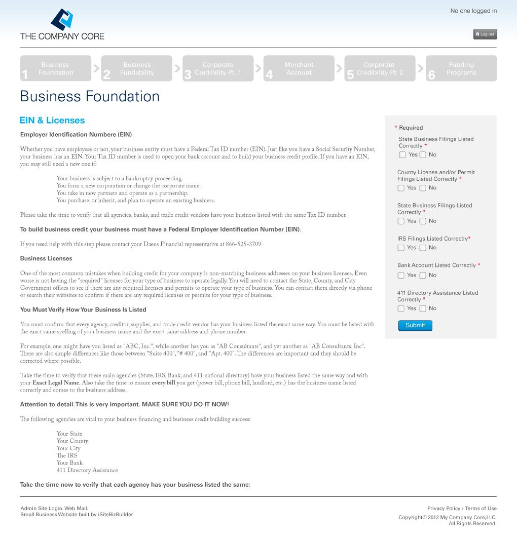Company Core needed a login system that helps companies get setup for company funding. The goal was to have an easy to understand step process.
